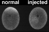 Laurinda Jaffe, Mark Terasaki and colleagues have performed this experiment. The result is shown here using a calcium indicator dye to visualize calcium transients. The oocyte receiving the inhibitory PLC fragment (an SH2 domain fragment) is on the right.