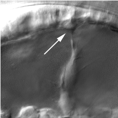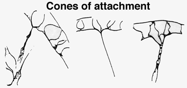 To see a movie of a high magnification view of such attachments forming and breaking, click on the picture below. The arrow in the picture denotes a cone of attachment.